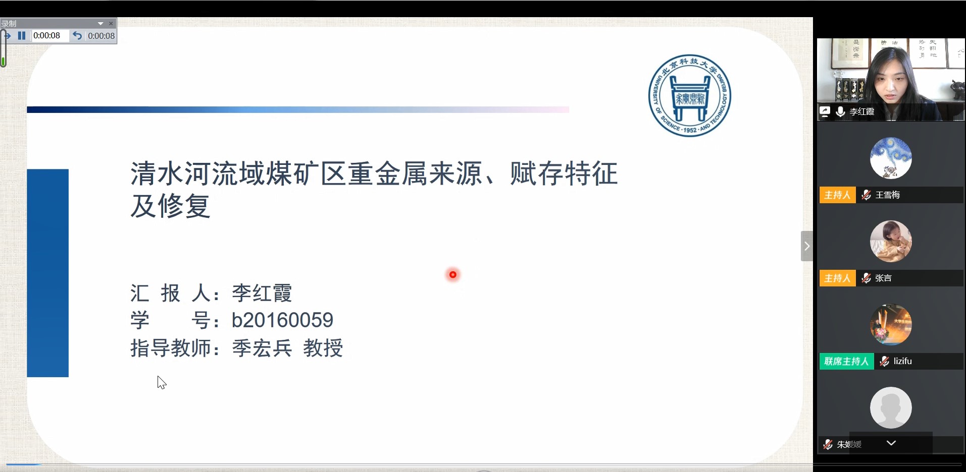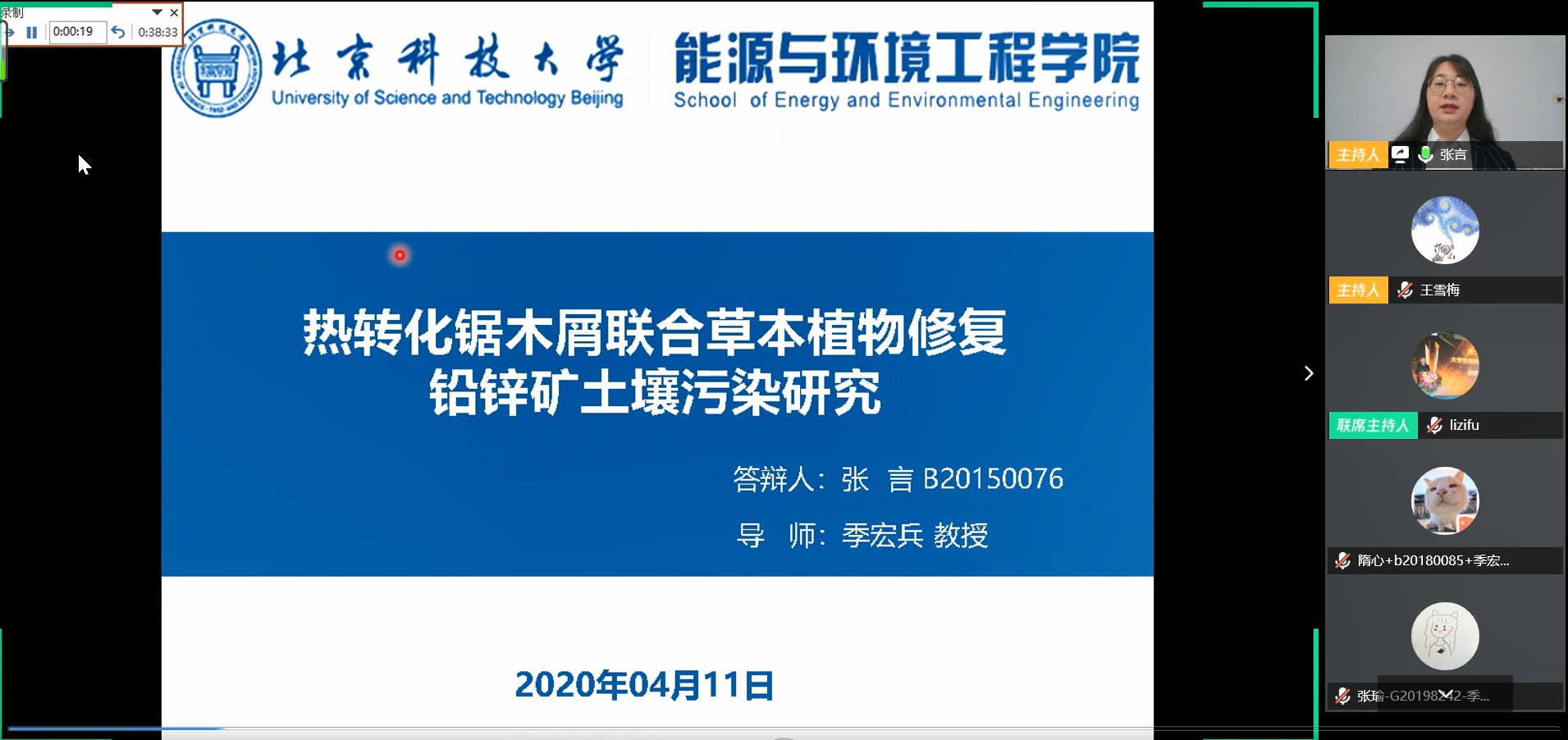 6. 答辩秘书准备好录屏软件,将预答辩过程全程录音录像,实现整个答辩过程可回溯、可复查,确保线上答辩质量。