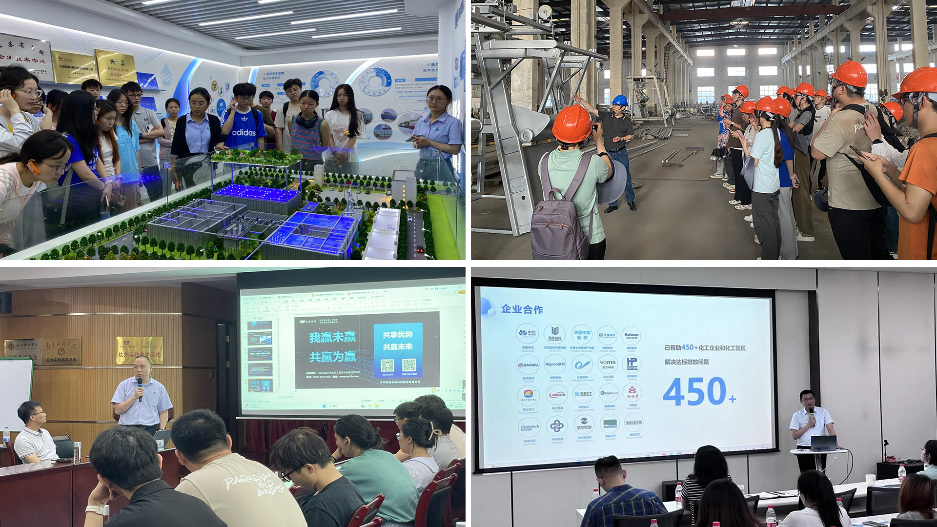 在江苏蓝必盛化工环保有限公司,企业结合自身的技术特色,为实习队伍带来了一场“环保管家”小课堂,深入探讨我国新兴的一种治理环境污染的新商业模式——第三方专业环保服务。