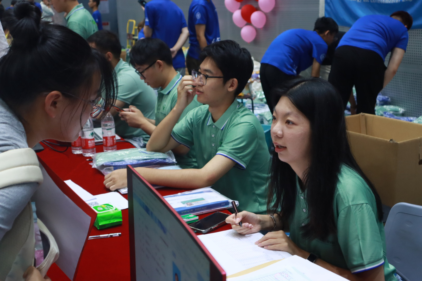 新生来到学院报到处,在小班主任和志愿者的帮助下有条不紊地完成身份验证、提交户口、档案材料、领取物资等报到手续。同时,学院为家庭经济困难新生提供绿色通道的支持与帮助,确保每位新生都能无后顾之忧地投入到老员工活。