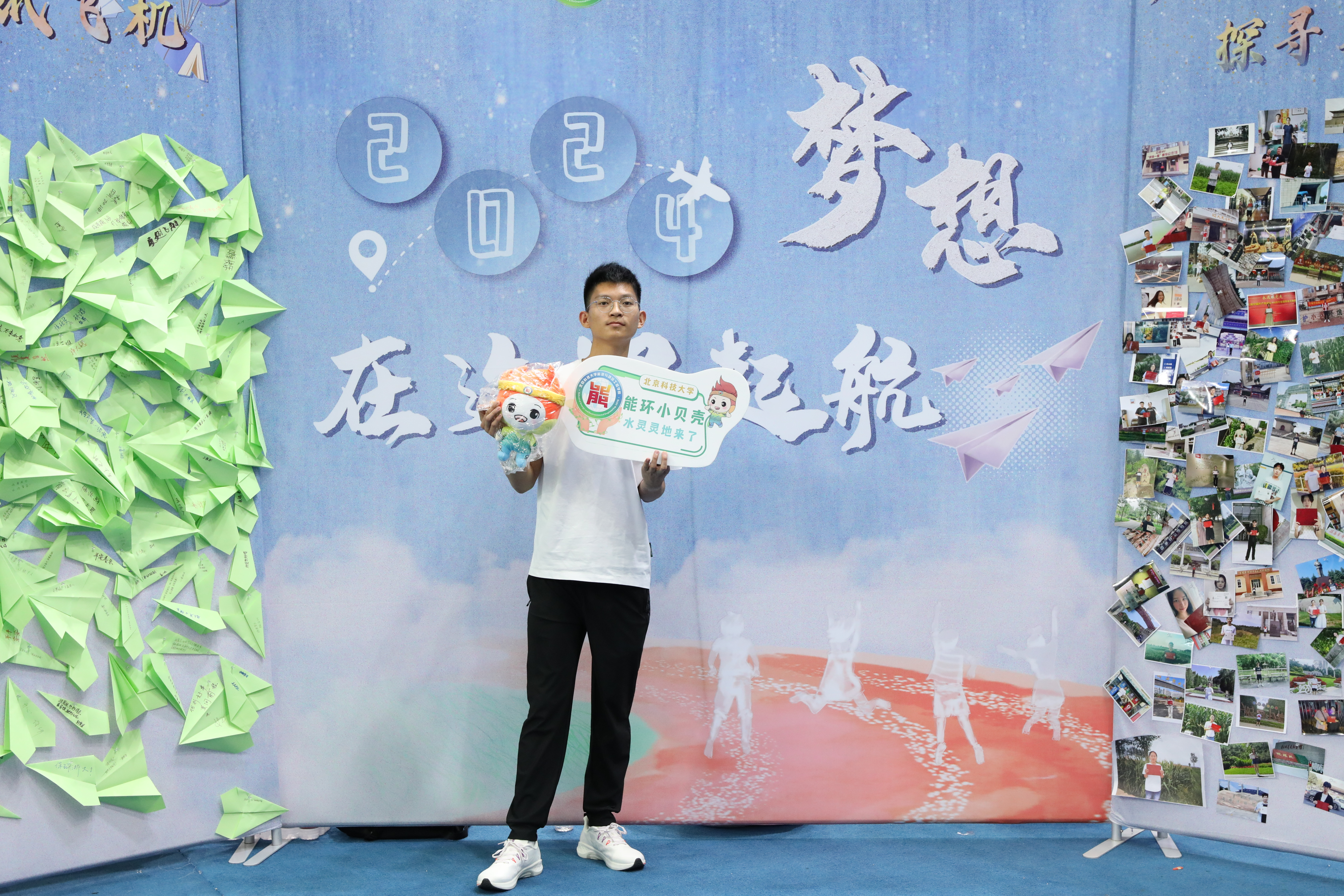 公司迎新现场设置了抽奖互动区,新生完成报到手续后可以先在纸飞机上写下大学心愿并在心愿墙上“放飞”,并将假期携带录取通知书完成“凝聚钢铁力量,探寻美丽中国”本科新生实践行动的照片张贴于照片墙上,留下独特而丰富的足迹。