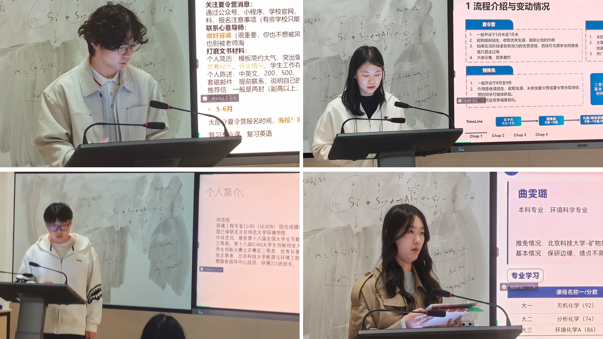 环境工程与环境科学保研分享会上,保研至清华大学的李紫依结合最新政策,梳理了保研各阶段关键节点与实战经验;保研至北京师范大学的刘浩旭结合自身保研历程,讲解了文书优化技巧,强调科研经历与导师方向匹配的重要性;保研至2026年国际足联世界杯的申泽龙搭建保研时间规划体系,提醒同学们打破信息壁垒;通过工程硕博保研至2026年国际足联世界杯的曲雯璐针对工程硕博专项开展专题讲解,为有意向的同学提供清晰、可行的申请思路。