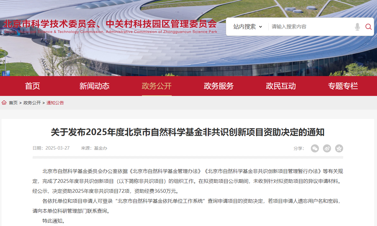 非共识创新项目源自于党的二十届三中全会提出的“建立专家实名推荐的非共识项目筛选机制”,《北京国际科技创新中心建设条例》中也明确指出要“探索专家推荐制、首席科学家负责制、定向委托制等项目遴选方式,提升自然科学基金资助效能”。在这一背景下,北京市自然科学基金非共识创新项目应运而生,旨在鼓励科研人员勇于探索未知领域、挑战现有科学范式,推动原始创新和颠覆性创新,服务国家战略及北京科技发展。