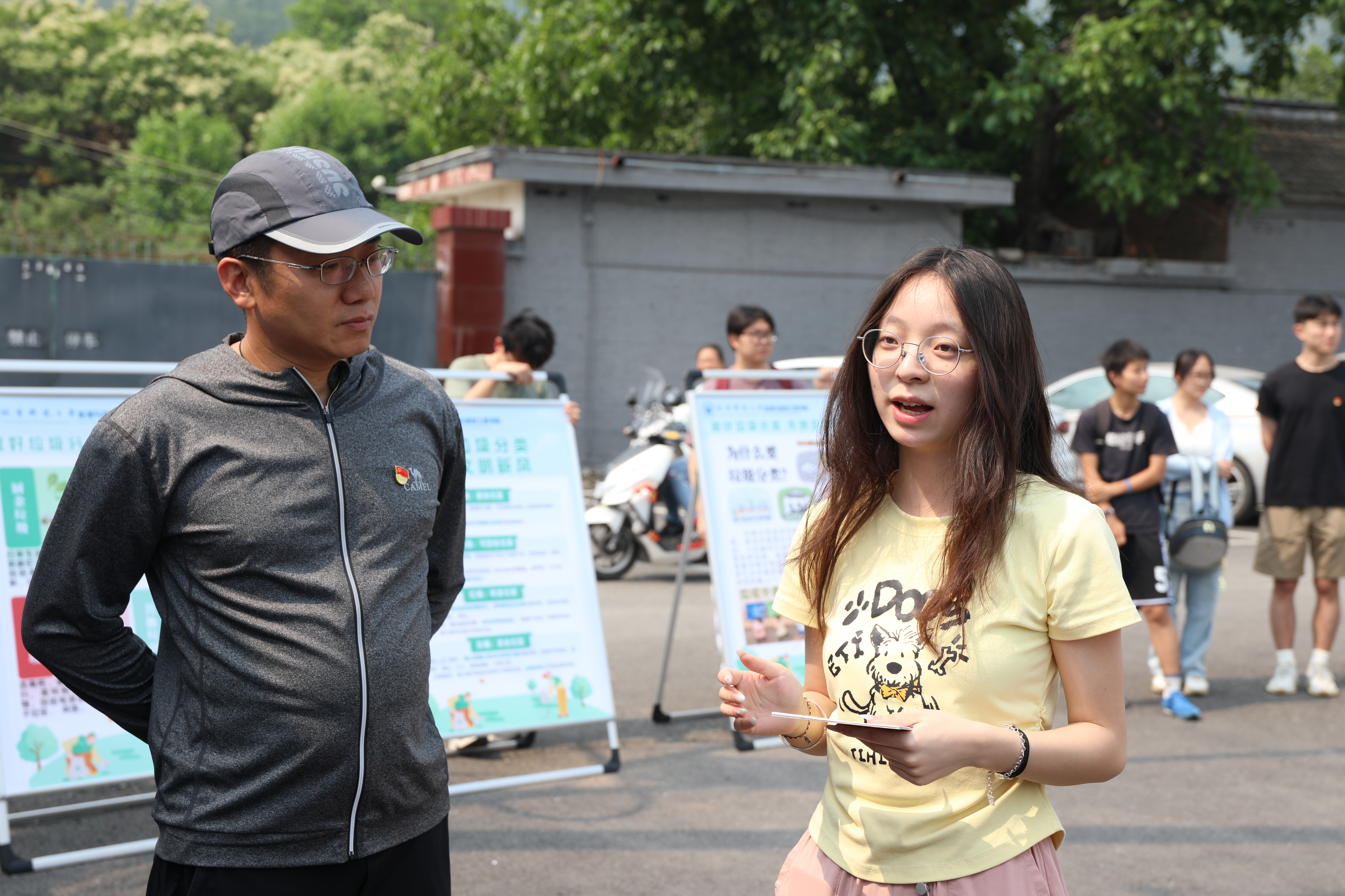 科普互动接地气,环保实践聚共识。 在垃圾分类科普外展中,党支部成员借助图文展板,生动阐释垃圾分类意义、标准及实践方法。互动问答环节气氛热烈,村民踊跃参与,在趣味中深化认知。“生态文明非口号,躬身践行在此时。村民的参与热情,更坚定了我们为绿色事业奋斗的决心。”苏若涵同学在活动中深有感触。