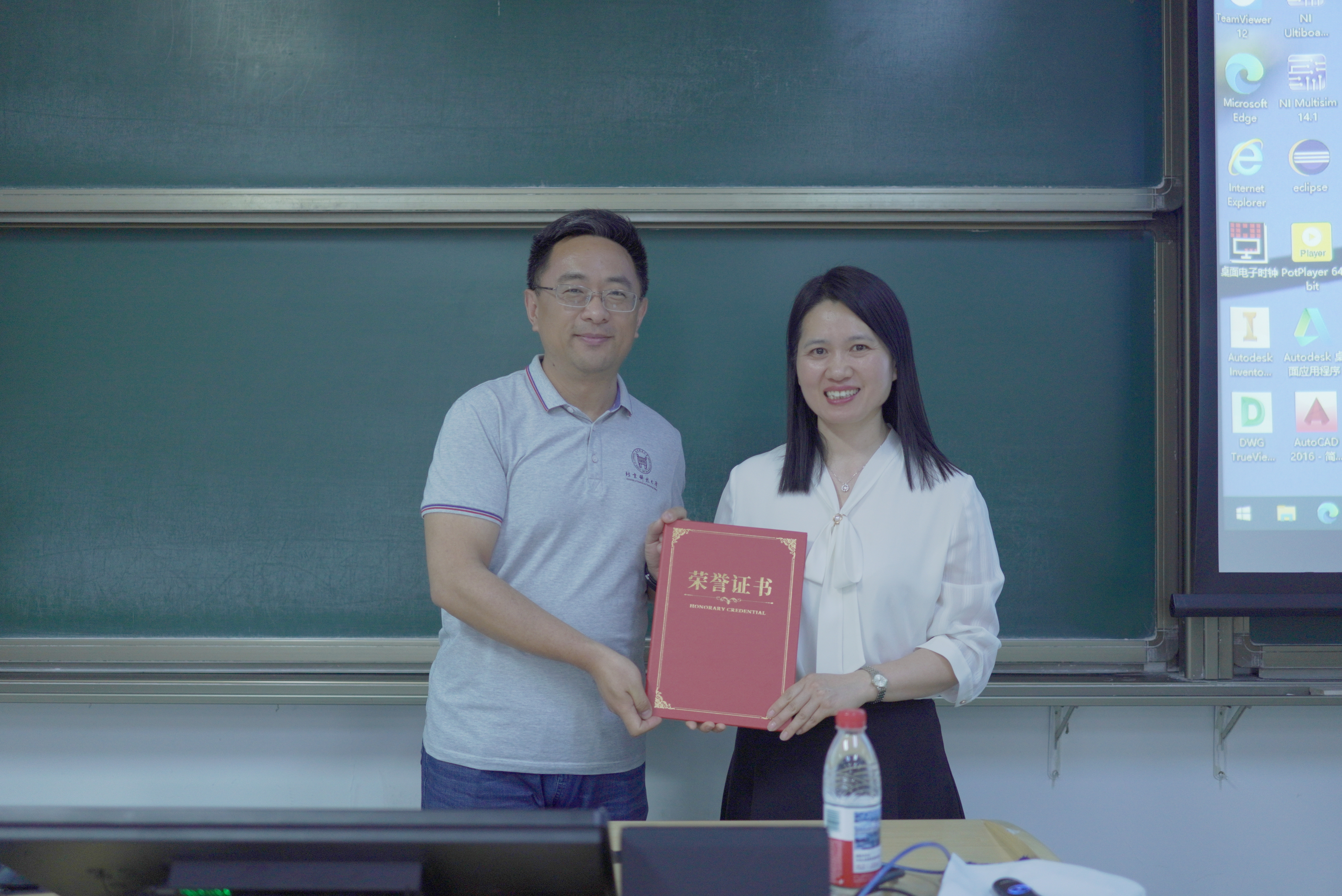 孙长林为郑莉芳颁发能环名师讲堂证书。