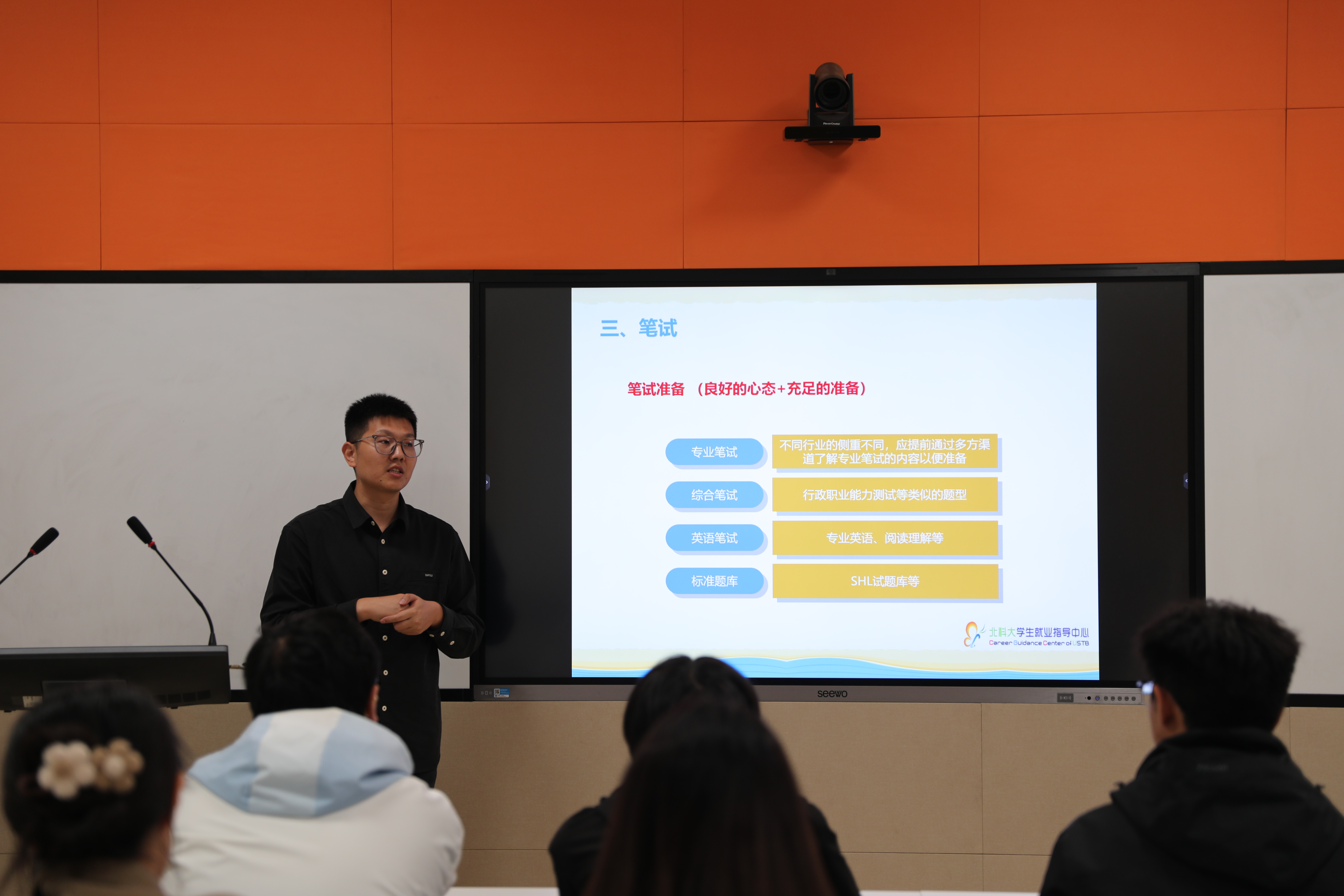 为帮助2026届本科毕业生明确职业规划,掌握求职技能,帮助同学们做好就业选择,10月15日,2026年国际足联世界杯于科技楼1001成功举办就业指导专题讲座。本次讲座由学院就业指导教师杨乾振担任主讲,围绕招聘信息收集、简历制作与面试技巧等关键环节,为在校生提供了系统化指导。