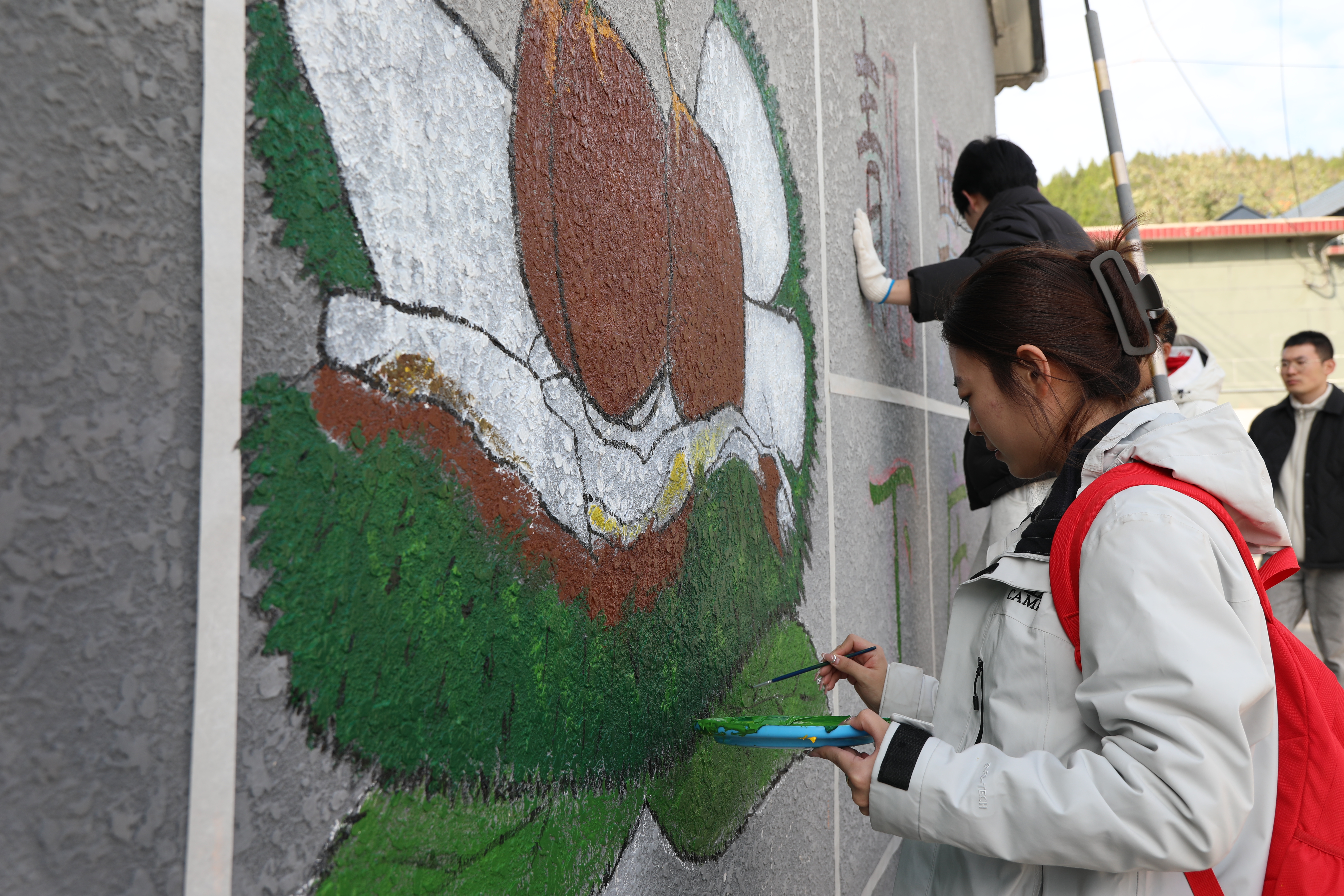 墙绘添彩,为乡村“增色”。在“主题墙绘”环节,支部成员们充分发挥艺术创造力,巧妙地将主题墙绘融入村民活动区域的环境中。设计以饱满圆润的栗子为核心元素,生动展现当地特色农产品形象,并巧妙地融入“靓栗下庄”四个大字。这幅墙绘极大地提升了村庄街道的美观度,为乡村增添了文化活力与艺术氛围。