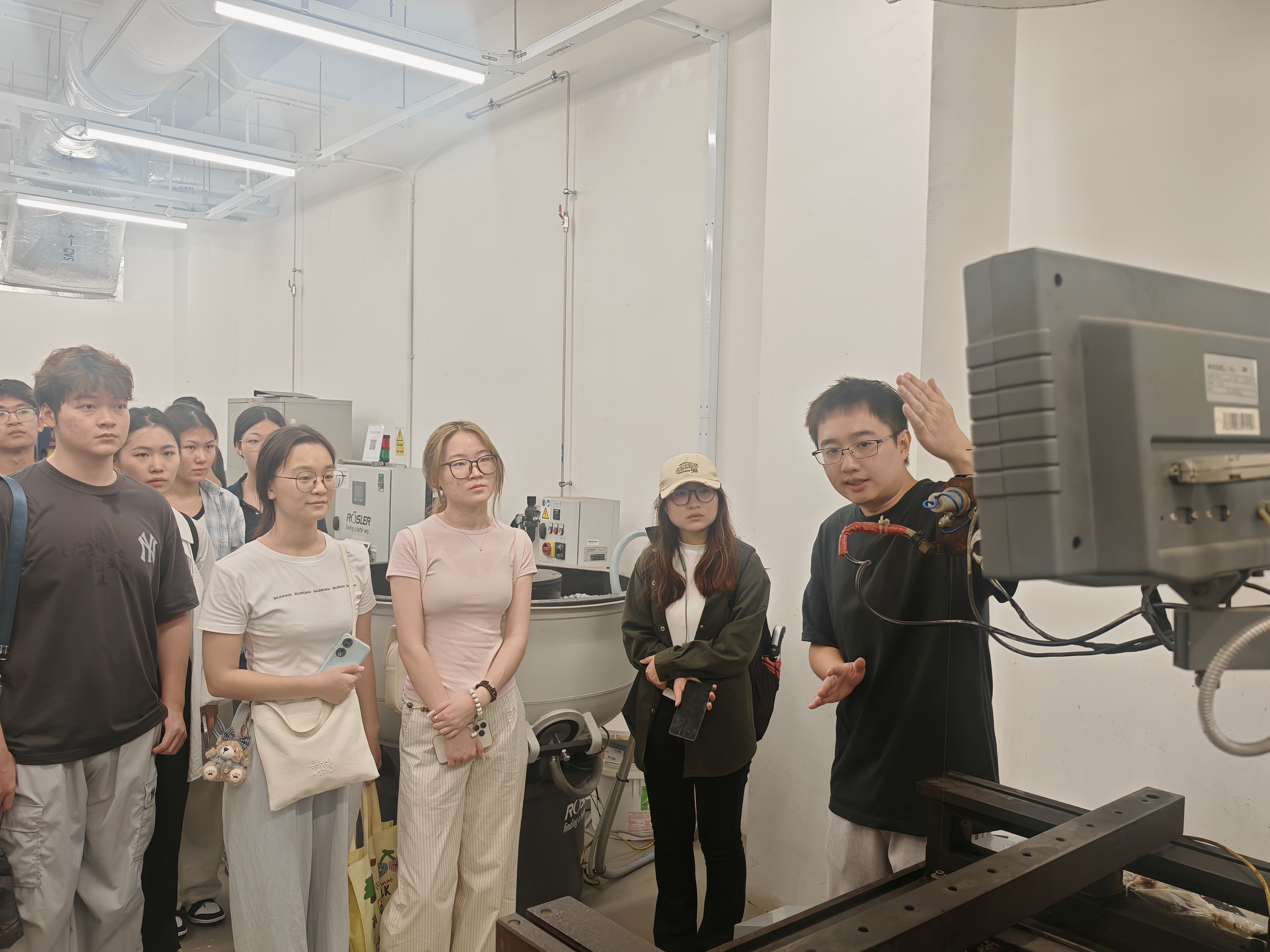 随后访学团参观了机械力学实验室。各类精密测试设备用于分析机械构件的运动规律、受力状态及动力学特性,为机械设计的优化提供数据支撑;材料力学实验室则聚焦材料在不同载荷、环境下的力学行为,通过拉伸、压缩、弯曲等实验,探究材料的强度、韧性、疲劳寿命等核心性能参数。