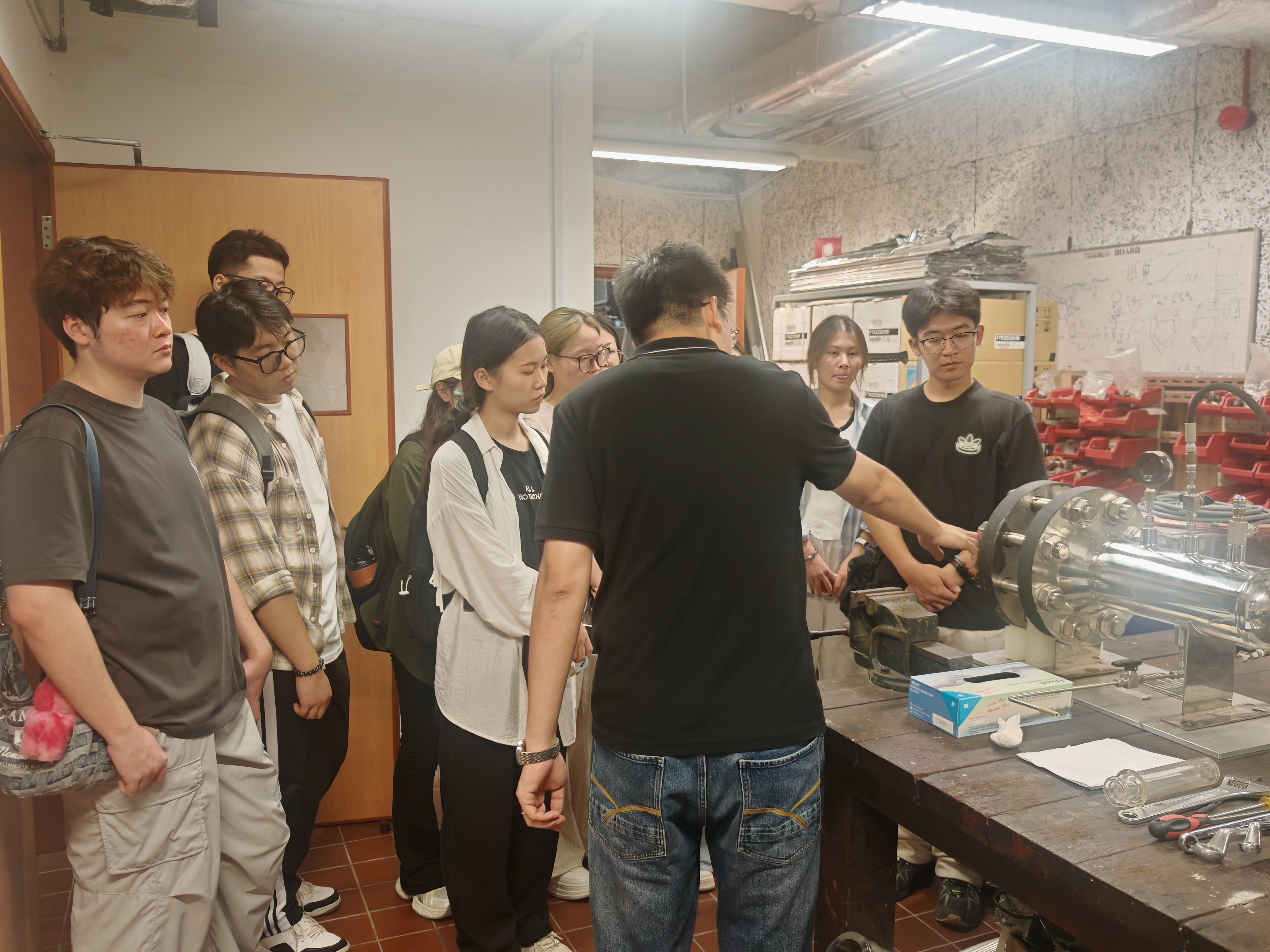 访学团队一行还实地参观了发动机测试平台。同学们系统性地认识了测试平台的整体结构、各核心组件的功能及其协同工作机制,让同学们直观了解到该平台在推动发动机性能优化、可靠性验证中的关键作用。