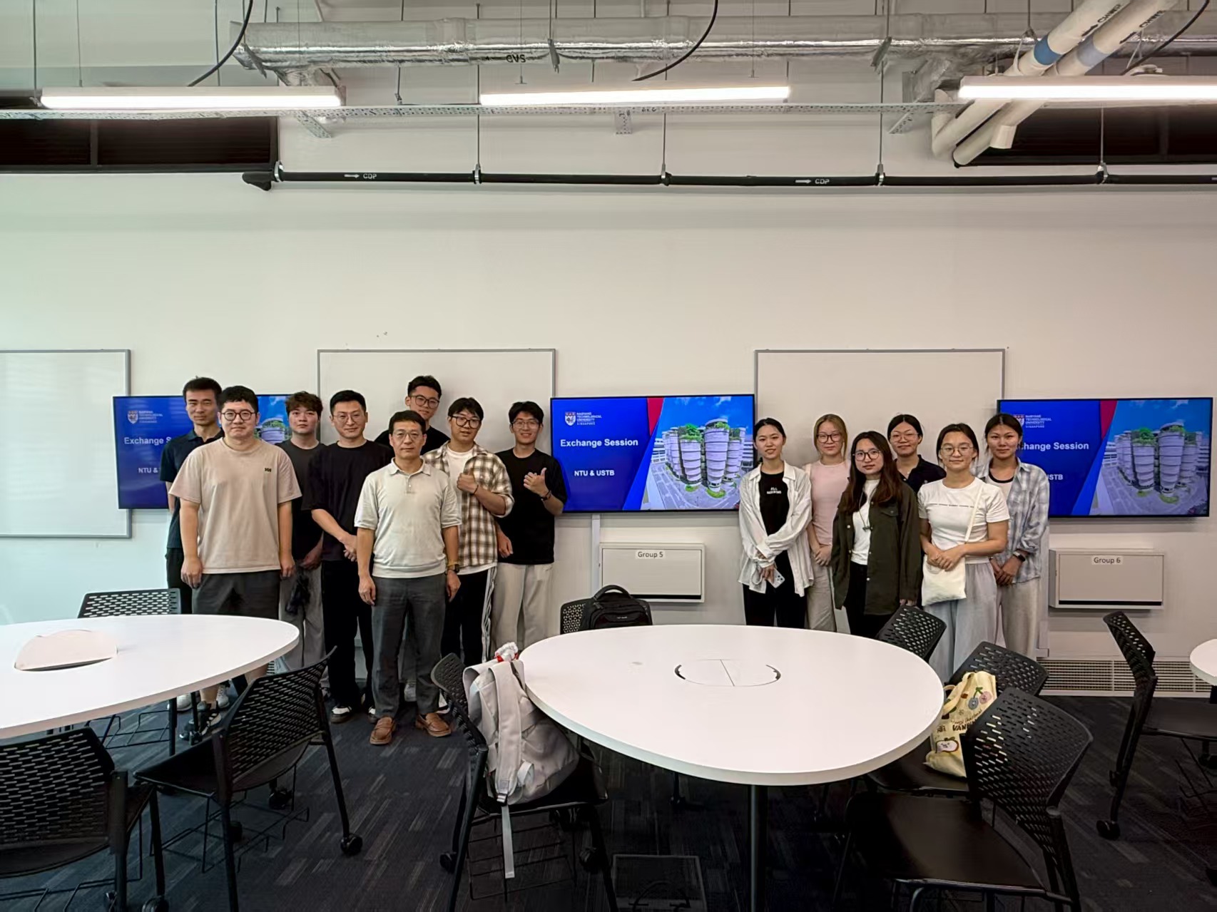 访学团与在读师生团队展开了讨论交流。在交流过程中,同学们不仅了解了南洋理工大学的顶尖科研实力,更感受到了“基础研究与应用创新并重”的学术理念。