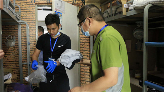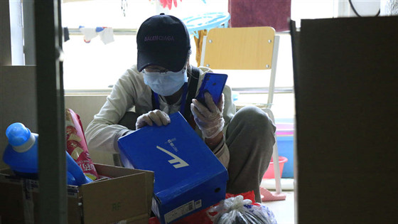 在宿舍,老师们通过视频连线的方式一一和同学们核对需要寄送的物品,一件件叠好要带走的衣物;在走廊,老师们认真封好每一件行李,贴好每一张信息单,仔细检查、反复确认。