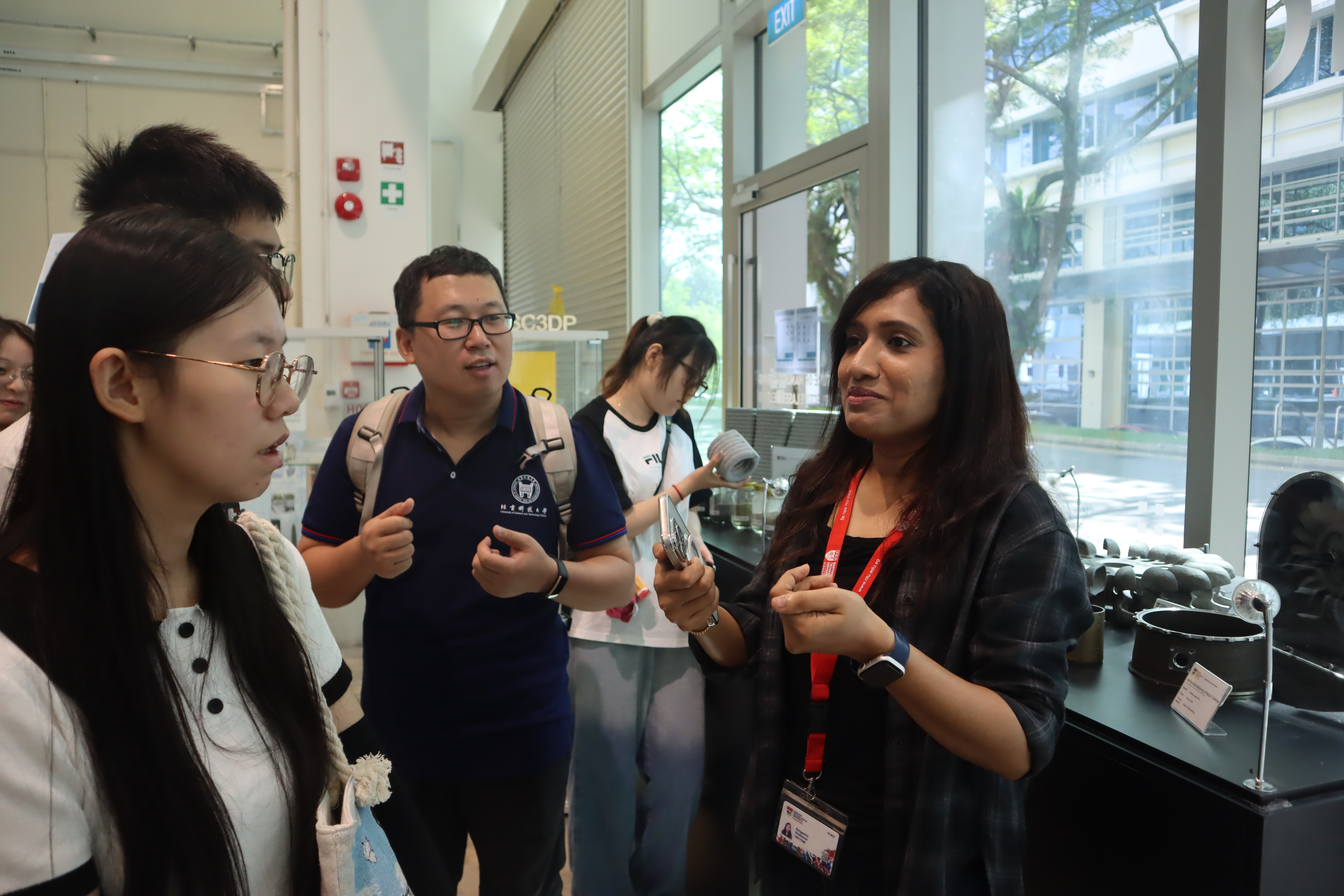 访学团在南洋理工大学机械与航空航天工程学院教授及员工代表的带领下,首先参观了赛车模型实验室。在这里,师生们详细了解了赛车的内部构造、制作工艺、所需材料以及3D打印技术在赛车制造中的应用。通过现场讲解,访学团对先进制造技术在实际工程中的应用有了直观而深刻的认识。