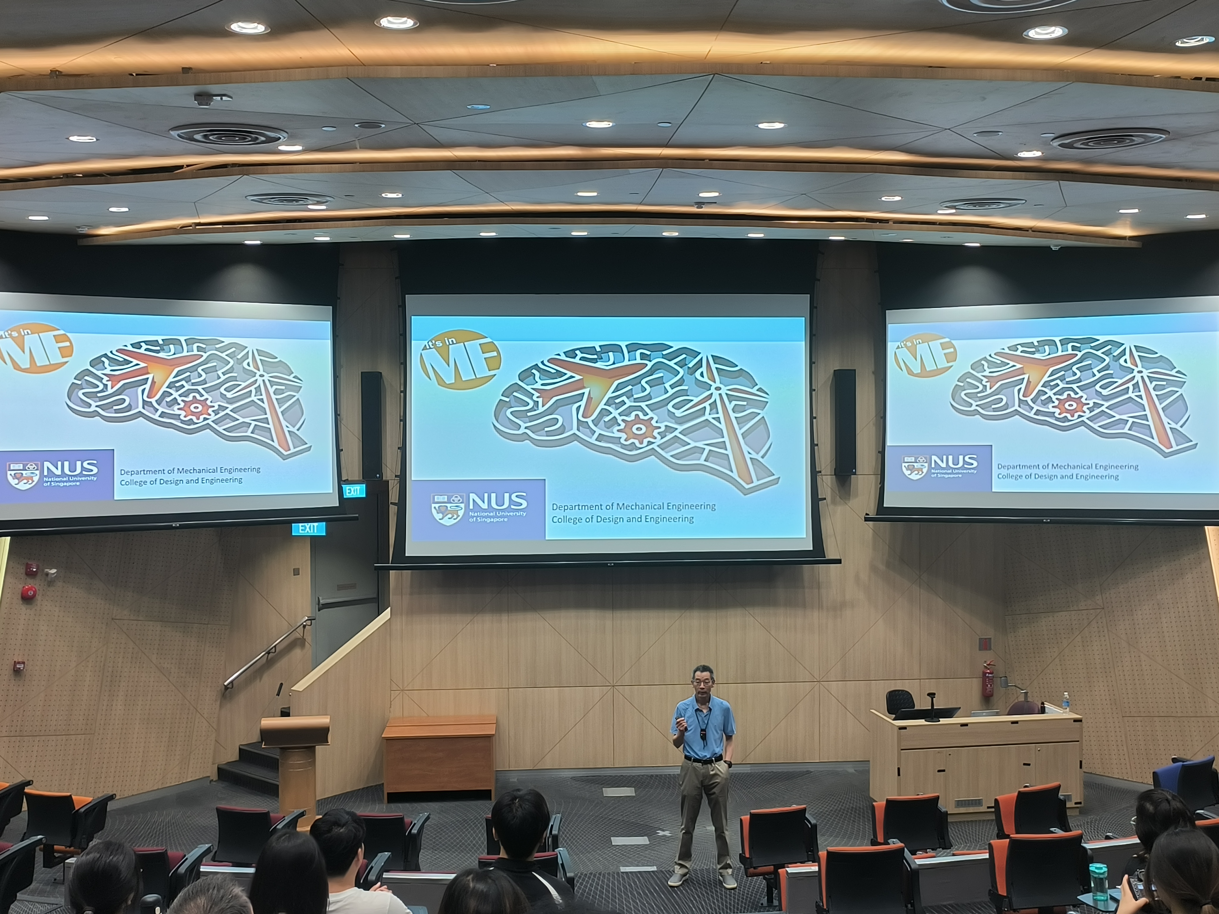 新加坡国立大学机械工程系副主任曾开阳老师为在场100余名到访师生介绍系所基本情况,详尽展示了机械工程系的卓越风采。他不仅介绍了研究型硕士与课程硕士两大研究生项目的培养方案,还深入解析了主要课程、录取条件、毕业要求以及奖学金申请的细节,而针对中国高校的员工,详细解读了备受瞩目的“311培养项目”,为学子们描绘了一幅清晰的学术蓝图。随后,多位系所在读研究生分享了他们的学习经历,从员工的视角,生动描绘了NUS的学术生活画卷,让在场的每一位听众都能感受到NUS的学术魅力与生活气息。