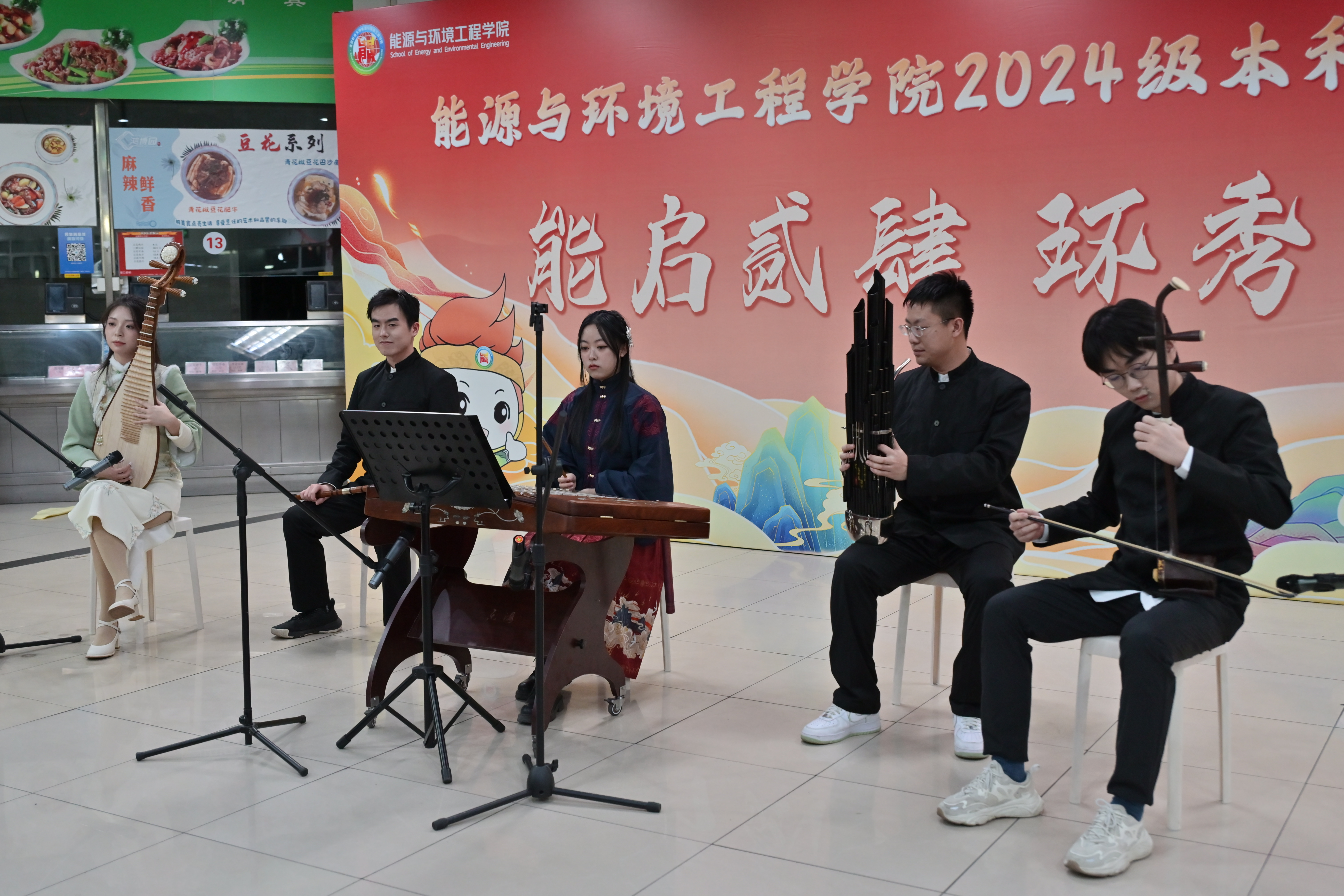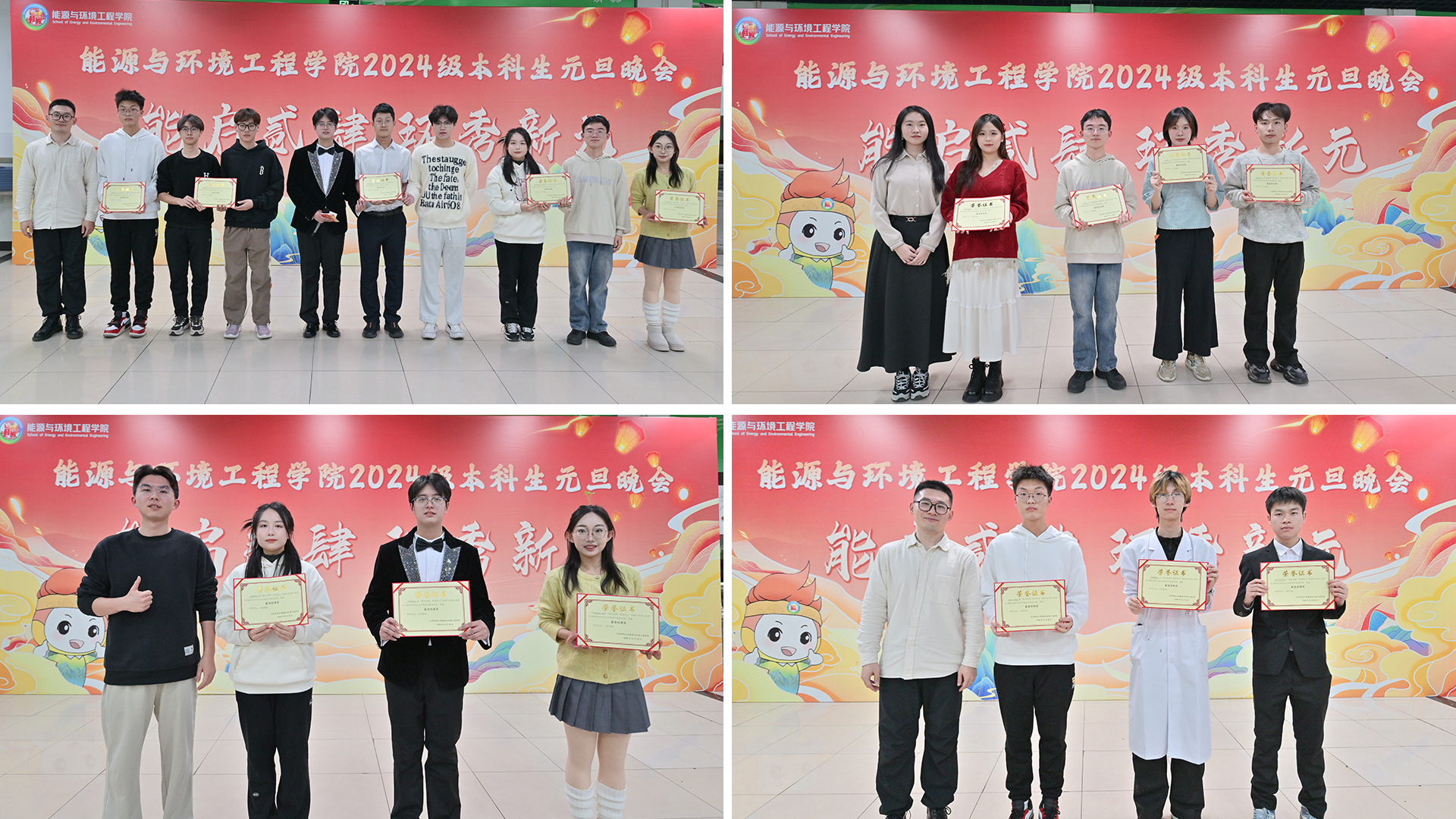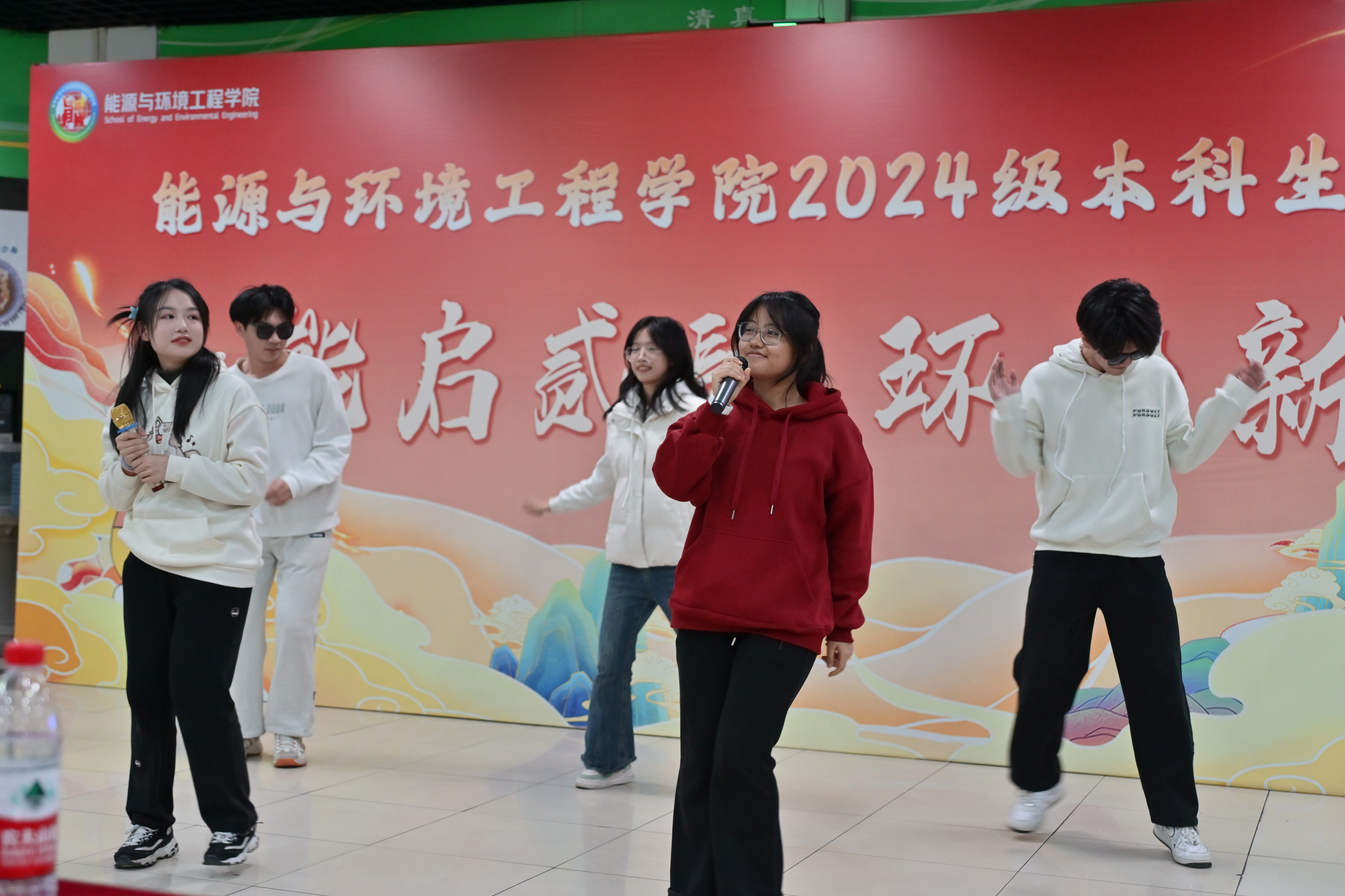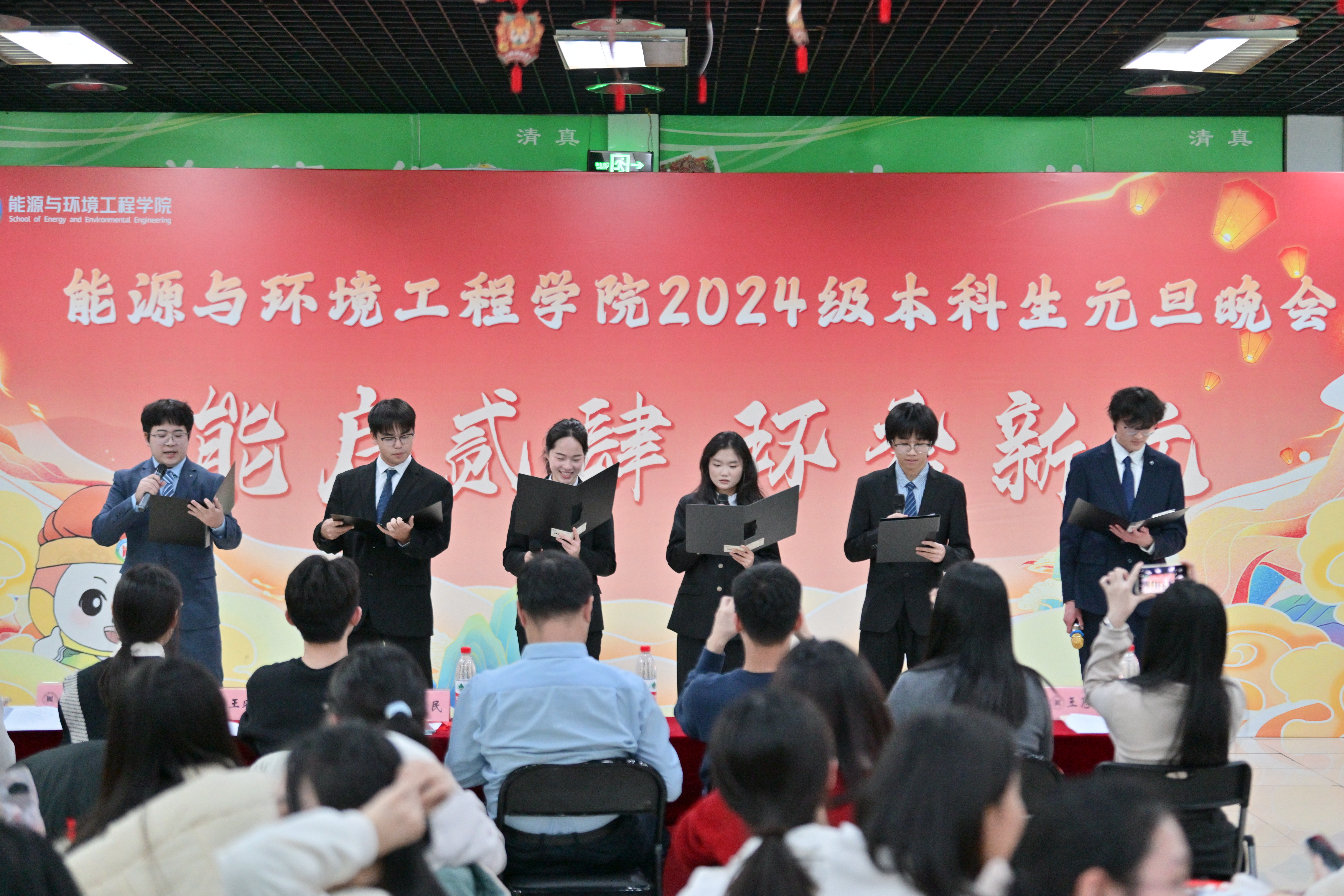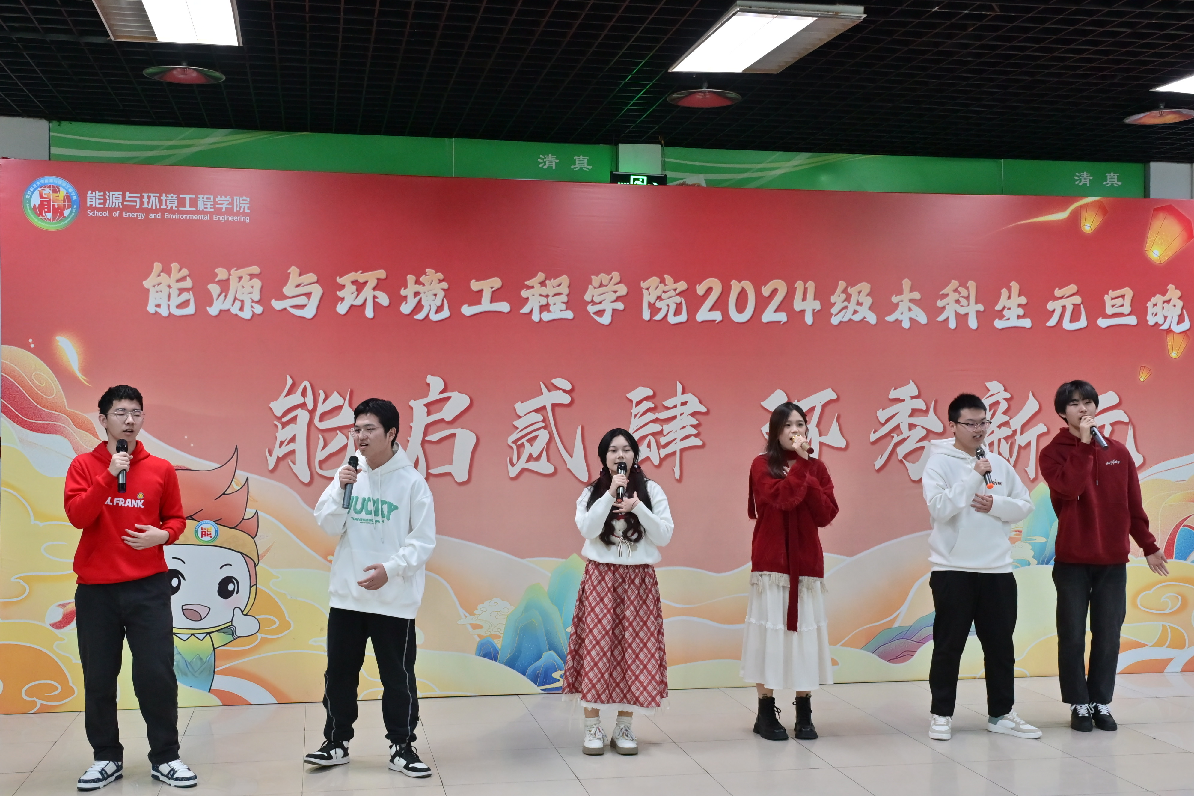 元旦晚会分为“展才艺·风华正茂”“融乐趣·笑语欢歌”“迎新岁·青春礼赞”三个篇章。演出开始前,全体参会师生观看2024级本科生纪念视频《来到能环的第125天》,展示了同学们入学后在校园里留下的足迹。