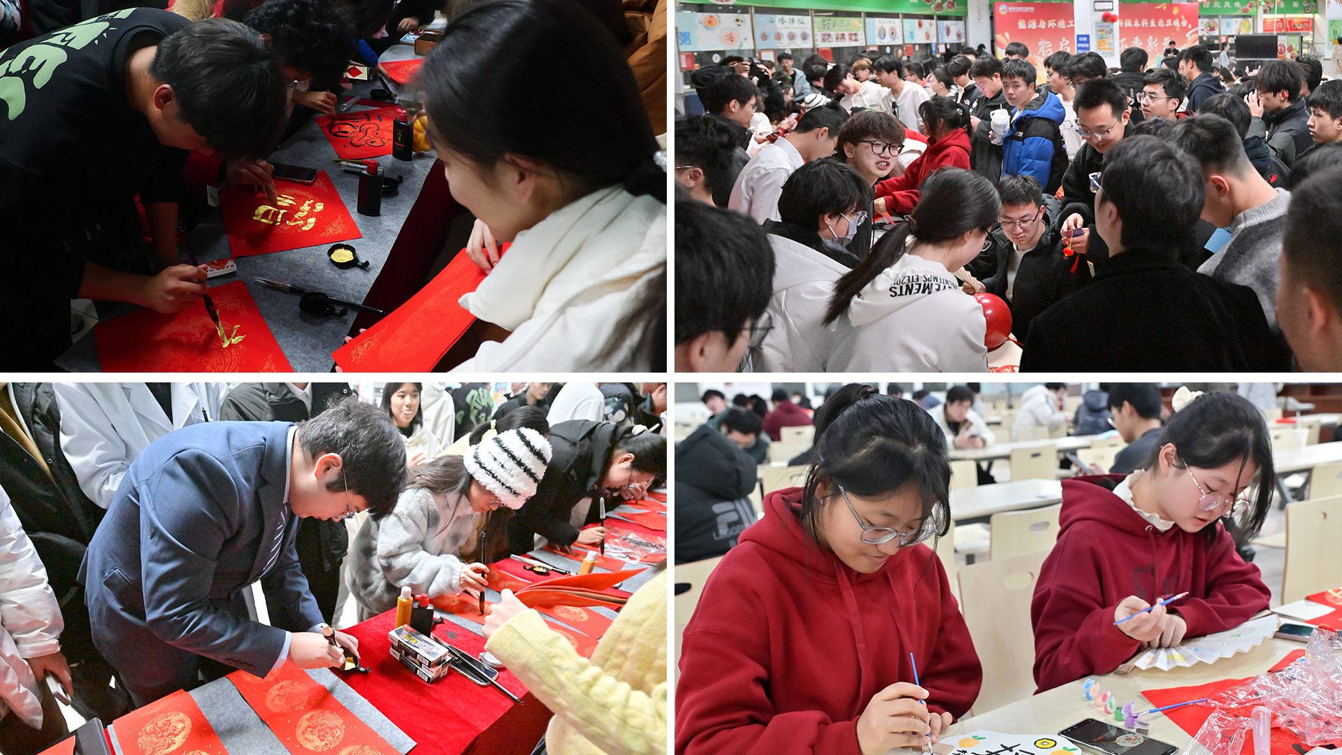 在晚会正式开始前,游园会活动为现场增添了一抹新年气息。游园会共设置“吉签迎春好运来——抽签许愿”“联语添福韵意长——书写对联”“舞动纸韵,五福迎春——新春剪纸”“灯影扇华雅集轩——灯谜折扇”“福满人间喜气盈——贴福集福”五个活动,同学们积极参与,表达了对新年的美好祝愿和对未来的期待。
